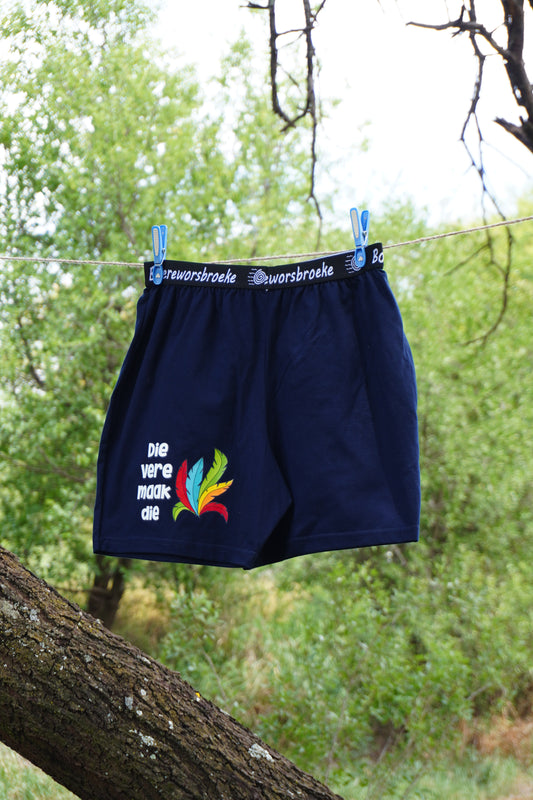 Die bydraes en idees van ons groep vriende het tot Boereworsbroeke gelei. Die sêgoed en idiome van Afrikaans skep die ruimte om te kan speel met woorde en prentjies, en hoe jy dit lees of interpreteer - is jou saak! Hierdie unieke slaapbroeke se sêgoed word saamgestel deur fyn luister, grappies en algemene gesprekstaal tussen mense - daar is so baie idees tussen mense se woorde.