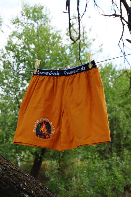 Jou gemaklike Boereworsbroek is gemaak van premium 100% rekkatoen met 'n sagte rek om jou middel. Links agter op die been en regs voor op die been is daar 'n idioom, sêding of prentjie gedruk soos wat jy gekies het. In groottes van Sprinkaanboud (Small) tot Blouwildebeesboud (5XL) is daar 'n broek vir elkeen! Ons unieke verpakking maak van die Boereworsbroek 'n egte boerworservaring! Jy gaan heerlik kan slaap in die broek, of wakkerbly of braai. Geniet jou Boereworsbroek soos jy wil!
